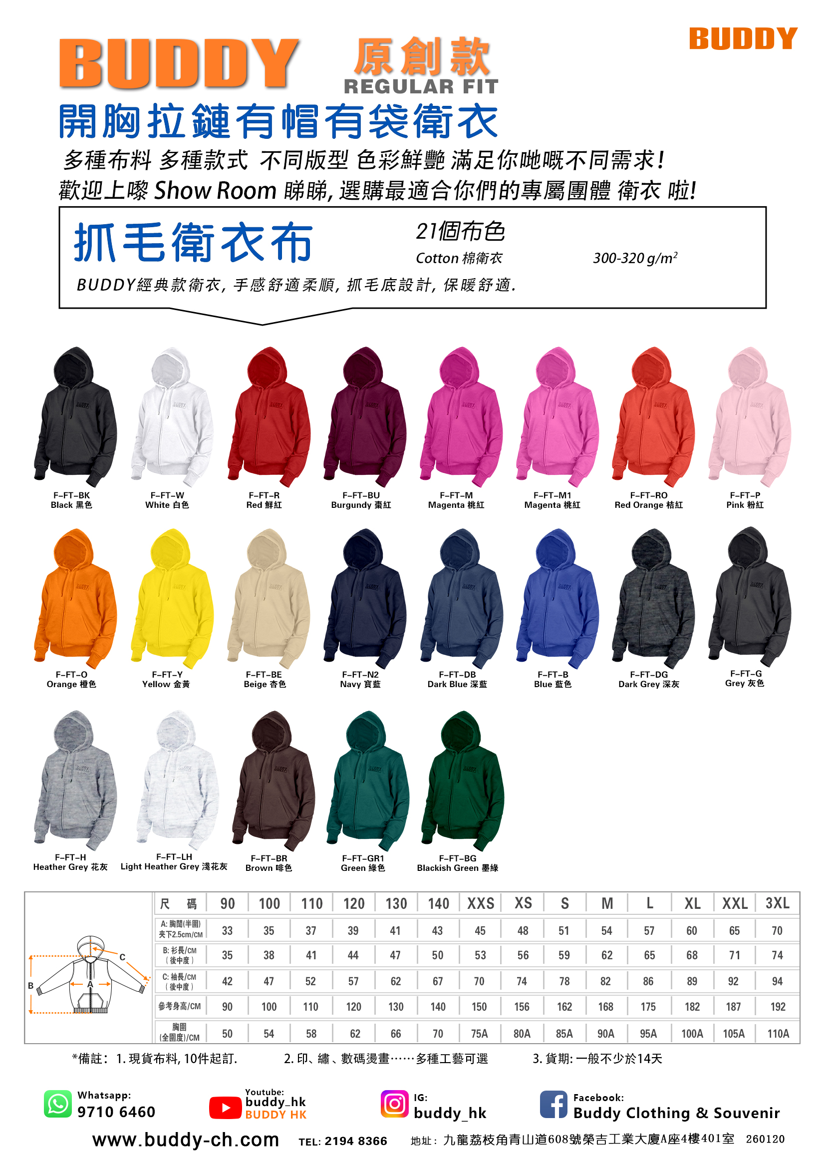 • BUDDY 原創開胸衛衣外套 (自家工廠製造)