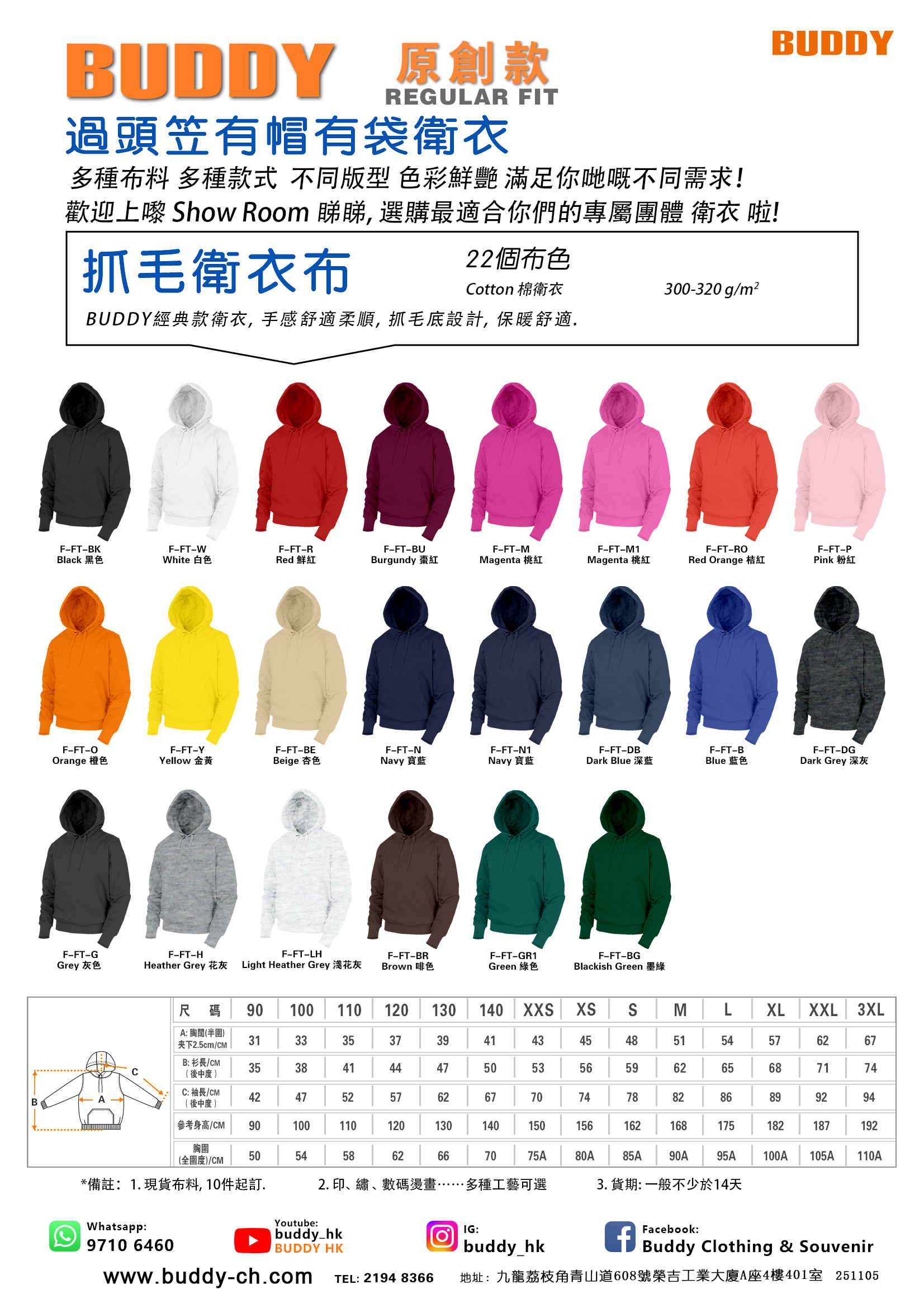 - BUDDY 原創過頭笠衛衣 (自家工廠製造)