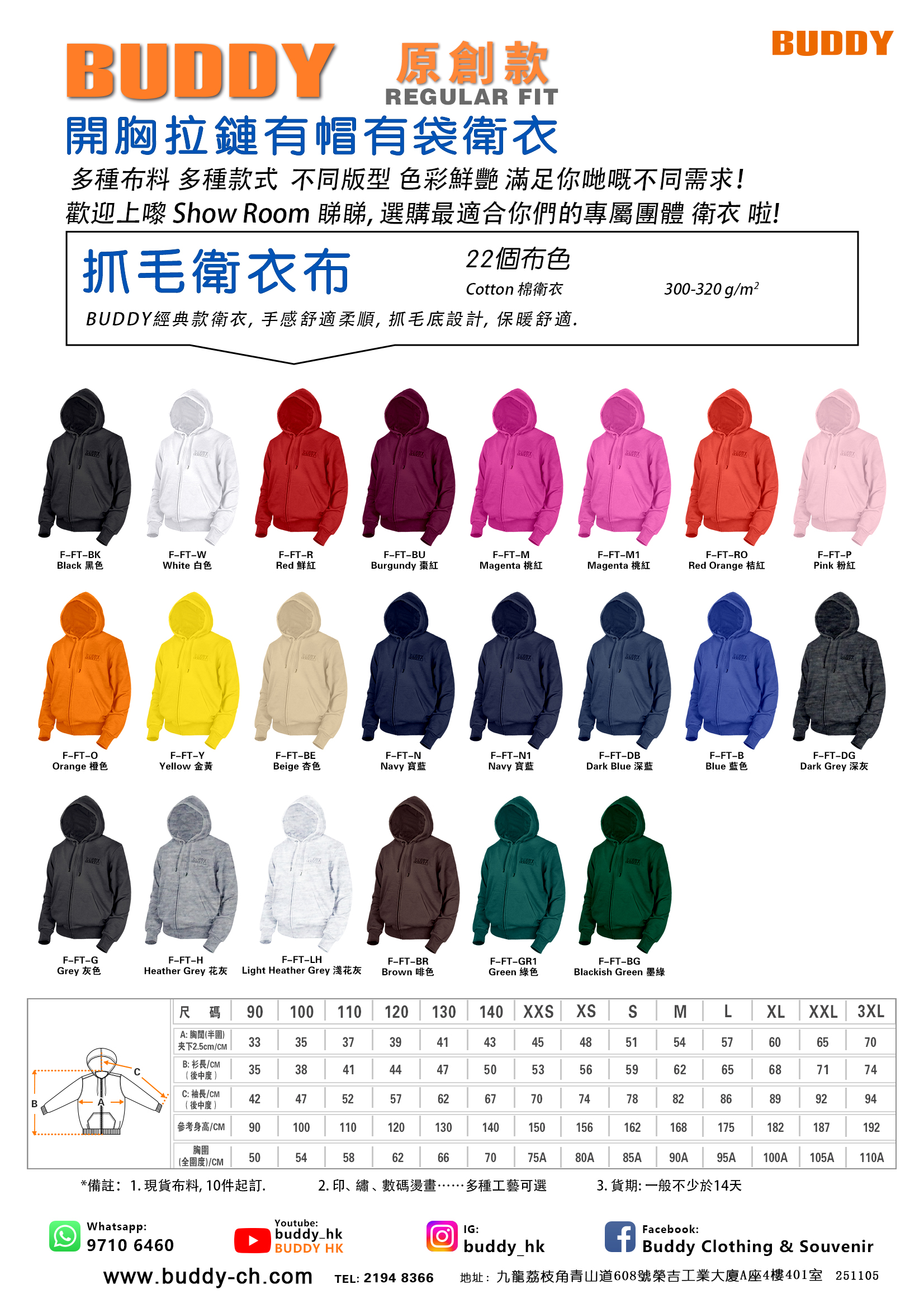 - BUDDY 原創開胸衛衣外套 (自家工廠製造)