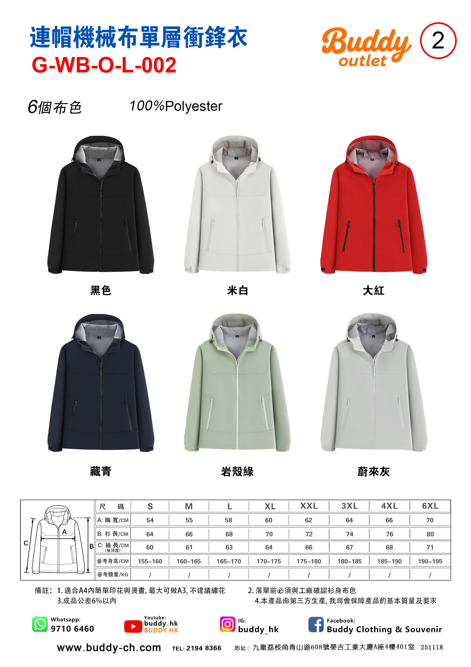 • BUDDY OUTLET 成品連帽機械布單層衝鋒衣