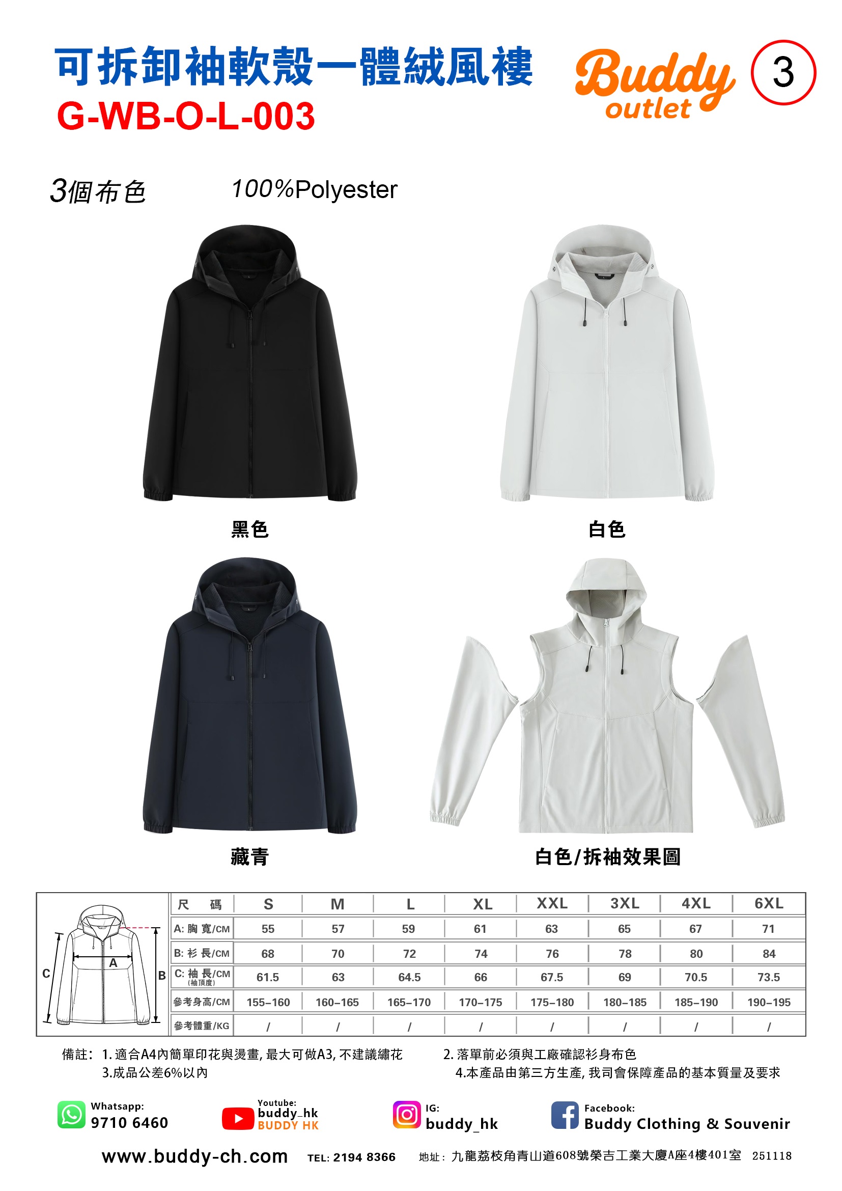 • BUDDY OUTLET 成品可拆卸袖軟殼一體絨風褸